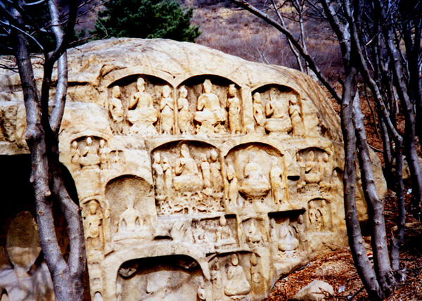羊头山又称羊山、老羊山、首阳山。位于长子、高平、长治县三地交接处,海拔1297米。主峰山顶上,遗存有一似塔非塔、似碑非碑的石制建筑物,其座雕刻为一身长265厘米伏羊,形体肥壮,头尾清晰;其身为正方体,四面雕刻佛龛,龛内雕释迦牟尼像和两尊胁侍菩萨,顶部横放一块140厘米见方四坡注水檐石,坡面平缓,与身相接处为平面并依势雕刻成勾滴瓦状,通高200厘米,结构简练,造形古朴,属南北朝时期雕刻艺术风格,此建筑造于南北朝北魏孝文帝太和年间(477-499),形制独特,保存基本完好,是中国古代建筑史上的一个孤例,是上党地区这一时期建筑形制的独特表现,其结构形制与雕刻艺术具有重要的研究价值。其旁有石塔两座南北对峙,相距约50米,北塔高6米,有石阶8级,南塔略低,有石阶7级,两塔形制古朴,手法简要,为唐以前遗物。山之南坡有石窟9处,各为单体,零星分布,为北魏至唐时期所凿。